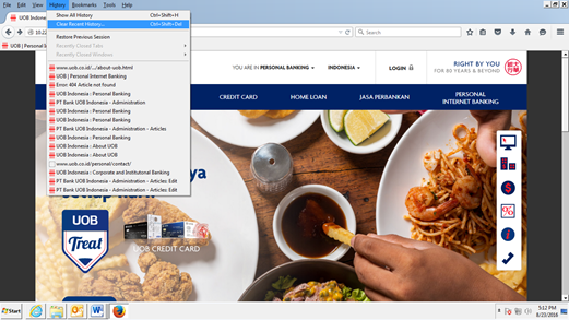 Untuk membersihkan riwayat pada browser Anda dapat mengikuti langkah-langkah berikut :
