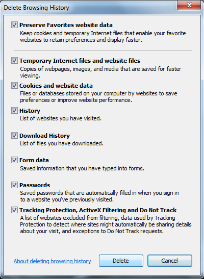 - Klik tombol Delete dibawah Browsing History.