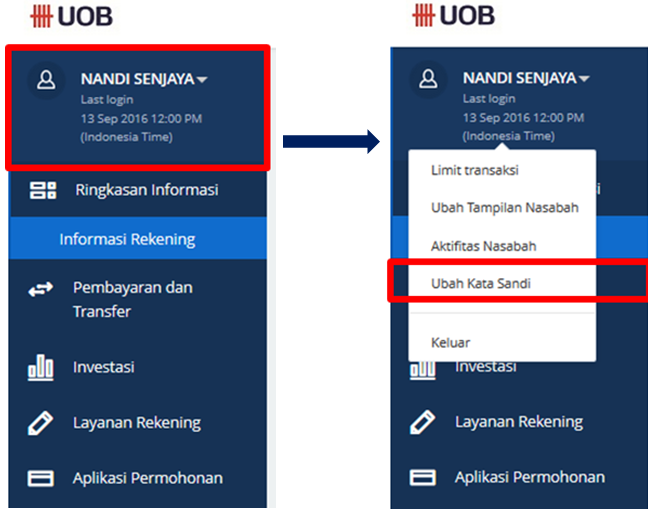 - Segera hubungi Call Center UOB Indoneisa 14008 atau Cabang UOB Indonesia terdekat apabila merasa akun Anda tidak aman atau segera ubah password PIB Anda.