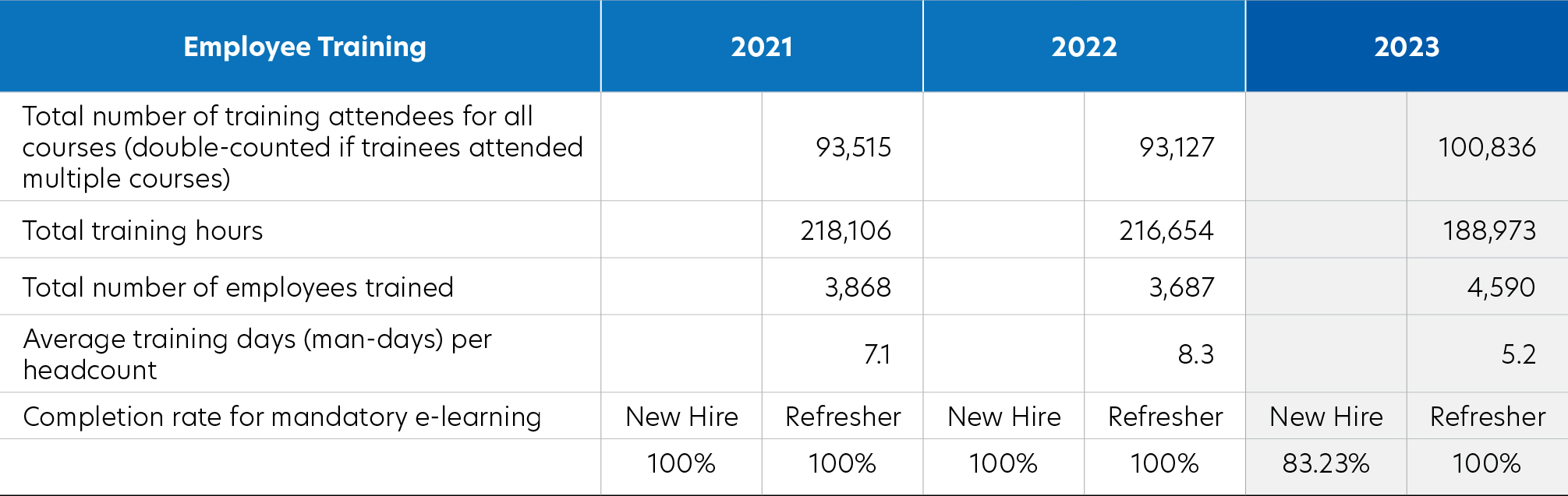 We also mandate compulsory training on Code of Conduct to ensure all UOB employees are fully aware of the standards and ethical behavior expected of them. As of December 2024, all new employees have attended the series of training, while existing employees is mandated to attend annual refresher course.